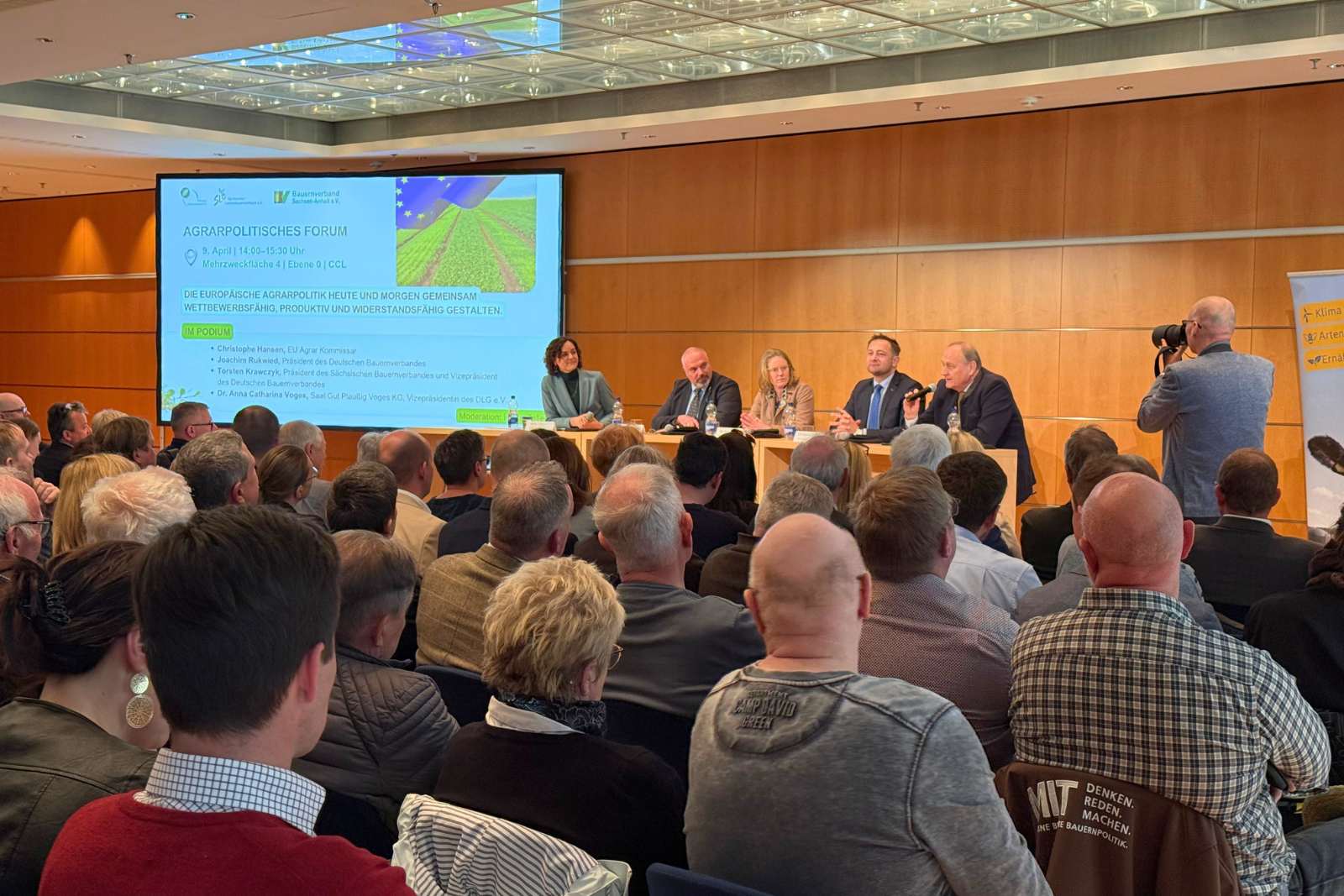 Den Auftakt am 9. April bildete ein hochrangig besetztes Forum mit EU-Agrarkommissar Christophe Hansen sowie führenden Vertretern der Agrarpolitik wie der Präsident des Deutschen Bauernverbandes Joachim Rukwied und der Präsident des Sächsischen Landesbauernverbandes Torsten Krawczyk. Deutlich wurde der hohe Zeitdruck für die kommende Förderperiode sowie die Notwendigkeit, Förderinstrumente stärker an den regionalen Realitäten auszurichten. Gerade aus mitteldeutscher Perspektive wurde betont, dass die besonderen Strukturen ostdeutscher Betriebe berücksichtigt werden müssen.