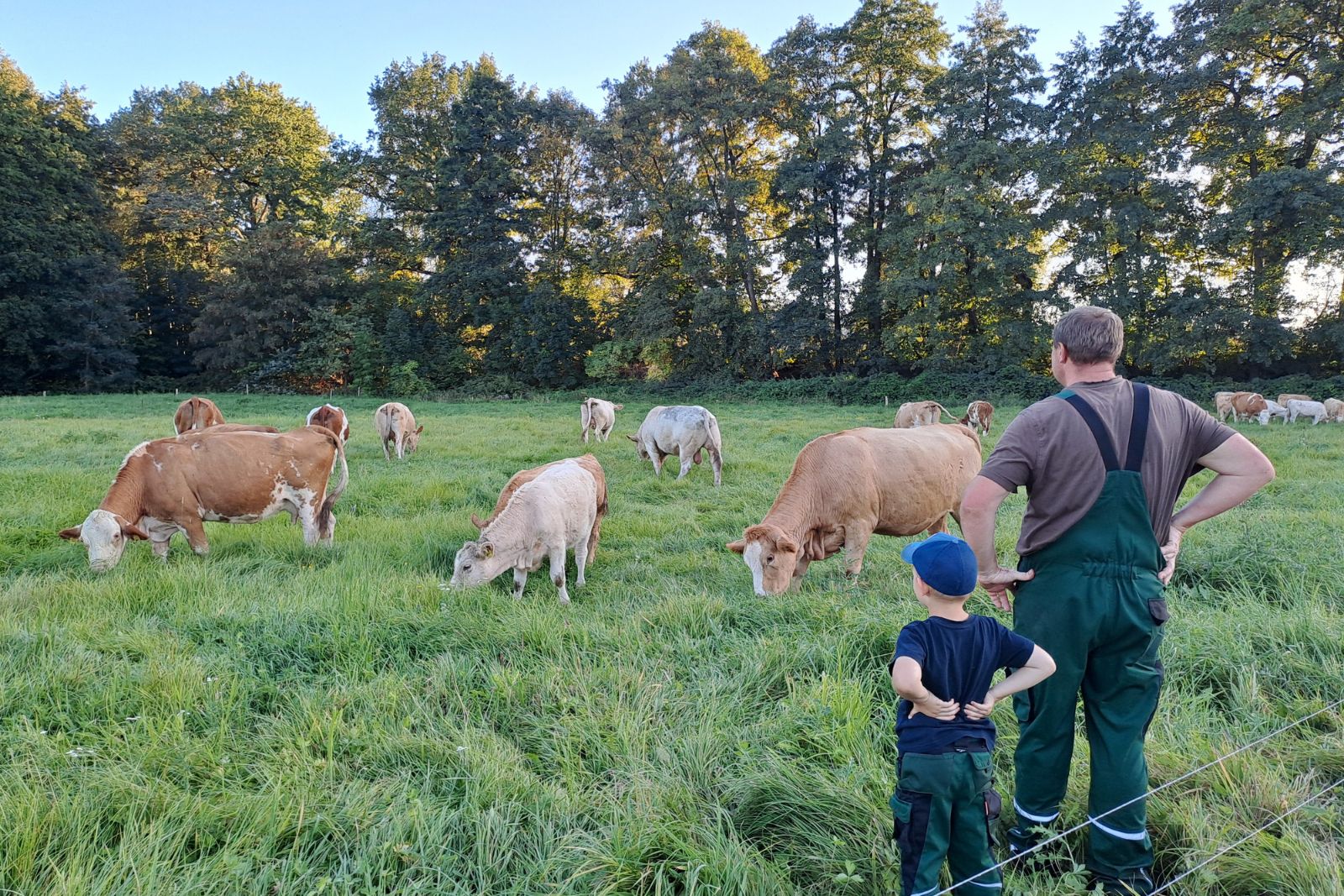 Die zweitmeisten Stimmen erhielt das Foto „Landwirtschaftsbetrieb“. Eingereicht hat es Jens Hoffmann vom Regionalbauernverband Bautzen-Kamenz, der darauf gemeinsam mit seinem Sohn Till nach getaner Arbeit zu sehen ist. Dem Fünfjährigen ist, ebenso wie seiner zehnjährigen Schwester, die Leidenschaft für Landwirtschaft quasi in die Wiege gelegt worden – hier hat er beim Weidebau für die Mutterkuhherde des Familienbetriebs auf einer Grünlandfläche bei Liebenau geholfen. Auf Rang drei landete das von Heidi Hasskerl aus Kassel eingereichte Bild „Ohne Landwirtschaft keine Landschaft“ – auch sie hat Weidevieh mit ihrer Kamera eingefangen. Beide Platzierten erhielten ebenfalls einen Präsentkorb.