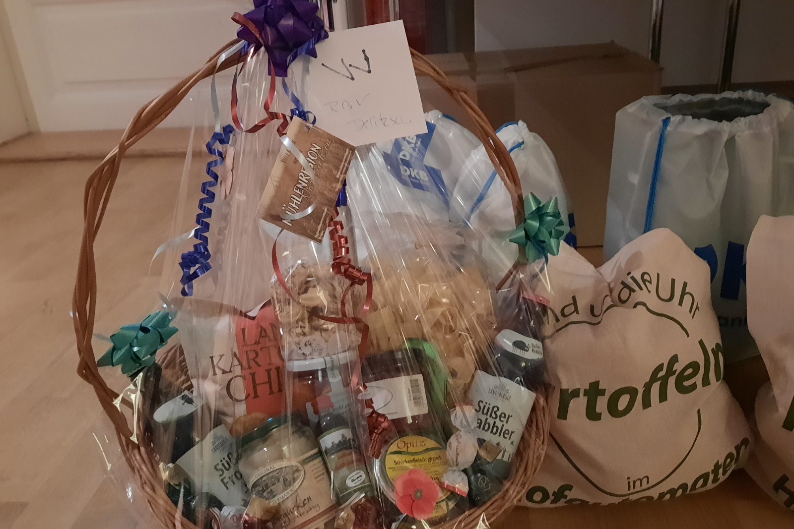 Ein besonderes Highlight war erneut die Tombola mit zahlreichen attraktiven Preisen: Eine Übernachtung in Dresden mit Besuch der Semperoper, Handballkarten für ein Erstligaspiel zwischen dem SC DHfK Leipzig und dem HSV Hamburg, Eintrittskarten für die Kult-Show „Herr Schröder – Der Rest ist Hausaufgabe“, Tickets für die Messe AGRITECHNICA 2025 in Hannover, eine Weinprobe im Schloss Wackerbarth, eine Übernachtung in Potsdam, zwei edle Kaffeebecher aus Meißner Porzellan, Gutscheine für Landtechnik, Bücher über Wildgerichte und viele, viele weitere Preise – sowie zahlreiche kulinarische Präsentkörbe, Kartoffeln, Zwiebeln und weitere liebevoll zusammengestellte Produkte aus den Regionalbauernverbänden.